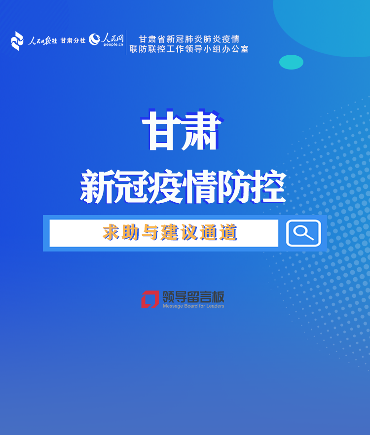 眾志成城,抗擊疫情,我們在行動!自10月18日甘肅發生新一輪新冠肺炎疫情以來,甘肅省委、省政府高度重視并持續加強防控措施。為了拓寬群眾訴求、建議渠道,協助有關部門深入了解基層群眾在疫情防控中面臨的各類問題,結合“我為群眾辦實事”實踐活動,人民日報社甘肅分社、人民網聯合甘肅省新冠肺炎疫情聯防聯控工作領導小組辦公室在“領導留言板”開設“甘肅新冠肺炎疫情防控求助與建議通道”,傾聽建議,回應群眾訴求。疫情防控期間,您在生產生活中遇到的急難愁盼,歡迎在這里留言。