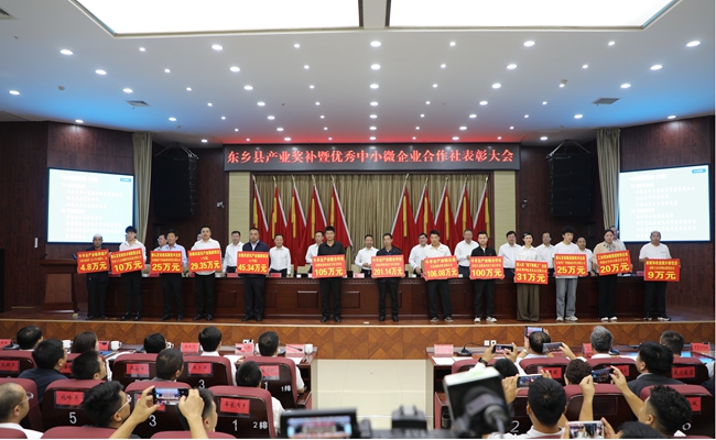 9月3日,東鄉縣召開產業獎補暨優秀中小微企業、合作社表彰大會,為優秀企業、合作社、就業工廠與生態及地質災害避險搬遷愛心捐贈企業授牌頒獎,并拿出6909.56萬元對在文旅、商貿、就業等方面作出積極貢獻的優秀企業、合作社和養殖戶進行獎補。 優秀企業家、合作社代表上臺領獎。馬俊攝 “…