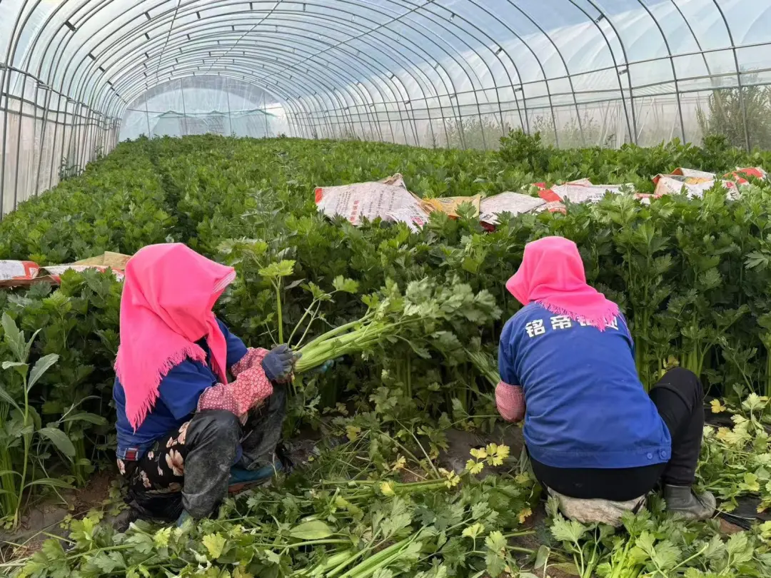 工人們正在收割西芹。馬斌攝 眼下正值高原夏菜豐收的季節,東鄉縣五家鄉設施農業高原夏菜示范基地里,工人正忙著采摘西芹等蔬菜。 五家鄉晝夜溫差大,當地產出的高原夏菜口感鮮嫩,深受消費者青睞?!案咴牟嘶芈鋺粑寮亦l后,我們從土地流轉、企業用工等方面全力給予支持和配合。目前,五家鄉群眾…