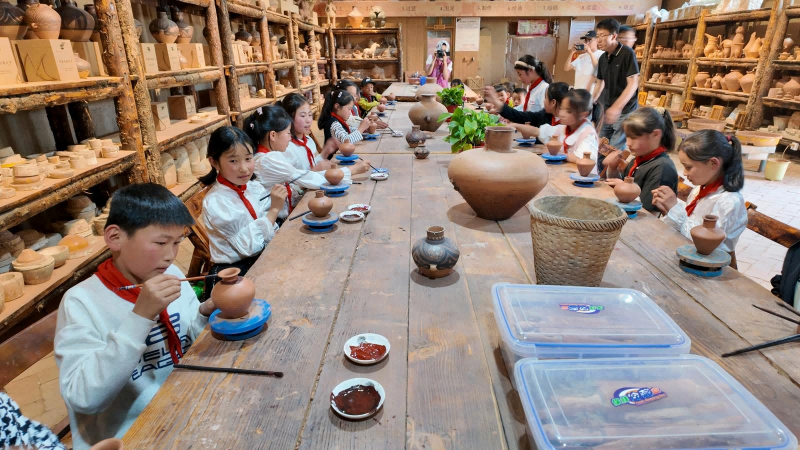 在實踐體驗環節,同學們在素陶坯上臨摹傳統紋樣。馬利軍攝 近日,東鄉縣文化館聯合林家彩陶文化傳承發展基地,組織上王家小學30余名學生開展主題研學活動。 活動中,講解員向同學們介紹了東鄉彩陶發展史。在實踐體驗環節,同學們用特制礦物顏料在素陶坯上臨摹鋸齒紋、蛙紋等傳統紋樣;在彩陶制作環…