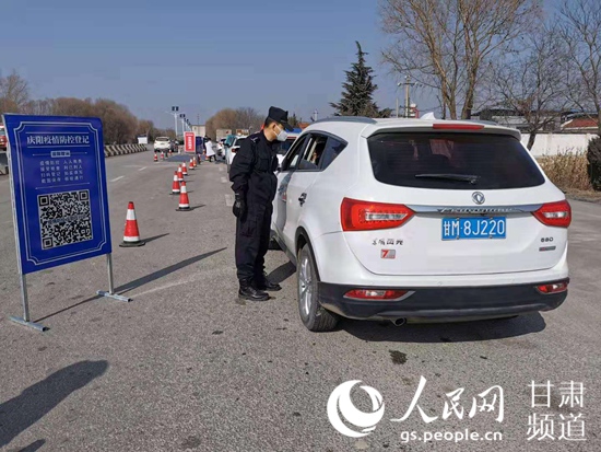 楊杰在疫情防控登記點對過往車輛進行檢測登記(張麗萍 攝)