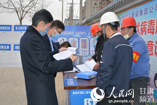 對施工現場登記表進行檢查。(榆中縣宣傳部供圖)