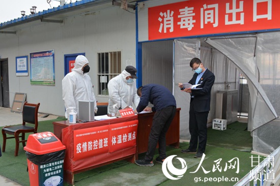 設置黨員先鋒崗在施工現場為工人監測體溫。(榆中縣宣傳部供圖)