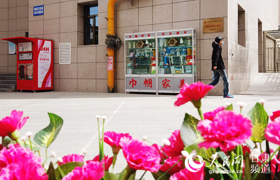 位于蘭州市城關區鐵路東村街道何家莊社區的盛世芙蓉小區內,居民在進出小區時都能看到“巾幗家美積分超市”。(邵蘭 攝)
