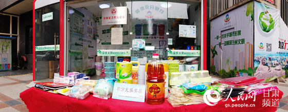 蘭州市東崗西路街道一只船社區的至誠首府小區,小區居民可通過參與垃圾分類獲取積分,然后用積分在“巾幗家美積分超市”內兌換所需物品。(邵蘭 攝)