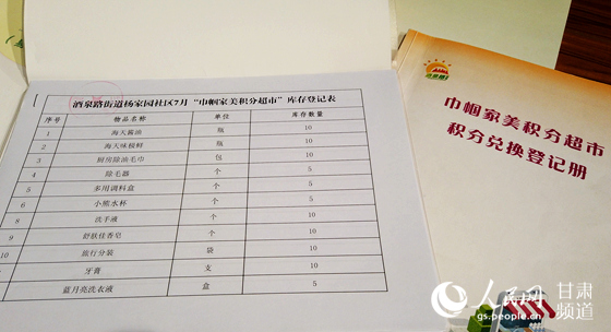 “巾幗家美積分超市”的《庫存物品登記表》和《積分兌換登記冊》。(邵蘭 攝)