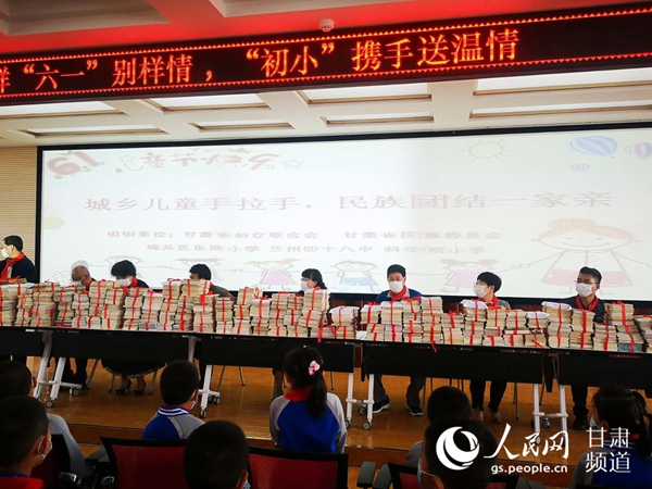 人民網蘭州6月2日電(黃帆)6月1日,甘肅省婦聯、甘肅省民委聯合城關區東崗小學、蘭州四十八中,開展了“城鄉兒童手拉手,民族團結一家親”為主題的圖書捐贈活動,為甘肅省東鄉族自治縣的孩子們送去溫暖,傳遞書香。孩子們小小的善舉,為這個“六一”增添了溫暖的色彩。