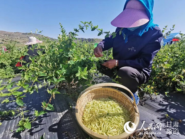 李家店鄉村民在采摘金銀花。 通渭縣委宣傳部供圖