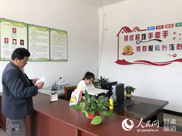 村民胡有強正在秦安縣云山鎮楊吳村黨群服務中心辦理扶貧小額信貸續貸。 杜昱欣攝
