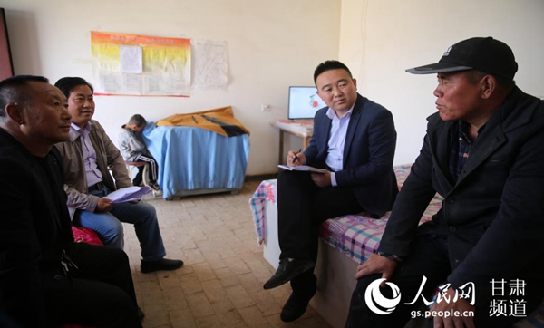 精文減會的效果之一就是基層干部能能多的深入到村組和群眾家中了解實際情況。圖為慶城縣和玄馬鎮紀檢監察干部和桑梨塬村支書在桑梨塬村村民高海鵬家走訪。(趙亮 攝)