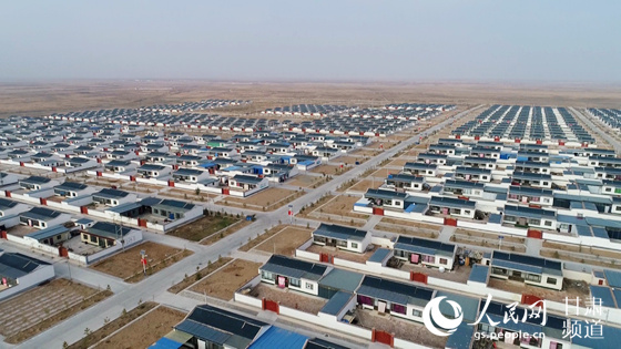 古浪縣黃花灘生態移民區富民新村航拍圖。 資料圖,古浪縣融媒體中心供圖