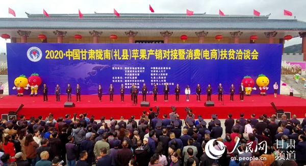 人民網蘭州9月28日電(王文嘉)9月27日,2020·中國甘肅隴南(禮縣)蘋果產銷對接暨消費(電商)扶貧洽談會在甘肅省隴南市禮縣秦人廣場開幕。