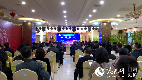 2020年中國甘肅隴南(禮縣)蘋果產銷對接暨消費(電商)扶貧洽談會蘋果營銷簽約儀式舉行。(禮縣縣委宣傳部供圖)