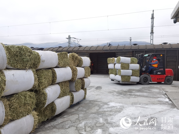 岷縣特色牧草通過蘭渝線發往重慶和海南三亞。(高翔 攝)