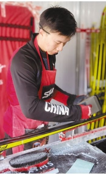 急剎車、摘雪鏡,23歲的王嘯露出笑容,比出一個肯定的手勢:“速度快,穩定性也好!3年前他從網球跨項轉到越野滑雪,而后經選拔成為越野滑雪國家集訓隊打蠟師。每逢重要賽事,王嘯總要試滑自己打過蠟的雪板,看看雪板速度快慢、打滑與否。