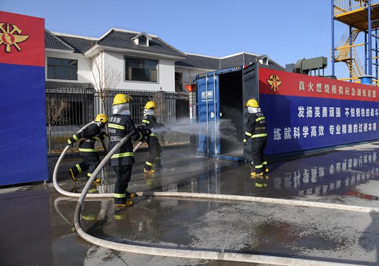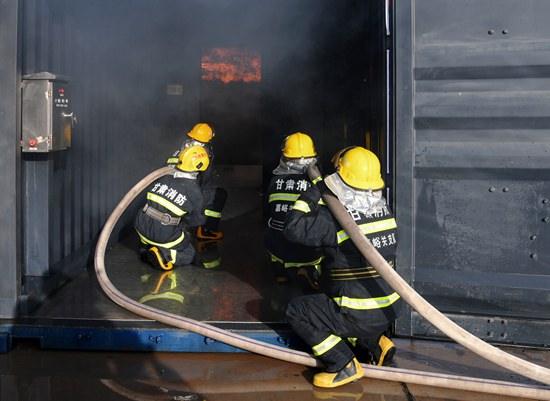 嘉峪關市消防救援支隊正在開展真火撲救科目訓練。(師永紅攝)