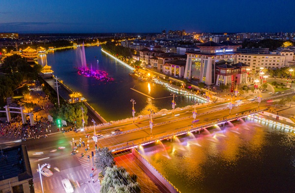 黨河風情線是敦煌市投資1.5億元建成的國家級水利風景區,由3.6公里濱水景觀帶、40萬平方米水域景觀、20萬平方米園林景觀構成,兼具水利防洪、文化展示、旅游觀光、游憩休閑等功能于一體。華燈初上,夜幕下的黨河風情線春風沉醉、綠水蕩漾、楊柳婆娑,漢唐風格觀景樓亭依河坐落,詩詞名賦和商駝引圖點綴其間,盡展無與倫比的自然人文之美。