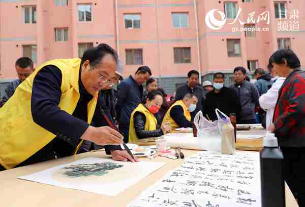 七里河區文化館組織書畫老師現場創作為群眾送上書畫作品。人民網 王文嘉攝