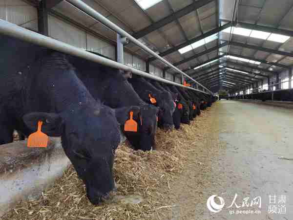 自動配比、上料、注水、攪拌……20分鐘后,一臺自走式TMR攪拌車將12立方飼料均勻投進牛舍,500頭來自澳大利亞的安格斯種母牛準時享用到了“營養午餐”。在甘肅省鎮原縣平泉鎮的甘肅中民海富肉牛產業示范園,7個人便可以管理好500頭牛每日的“飲食起居”。
