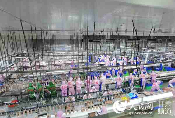 鎮原縣圣越農牧發展有限公司白羽肉雞加工車間。人民網 高翔攝
