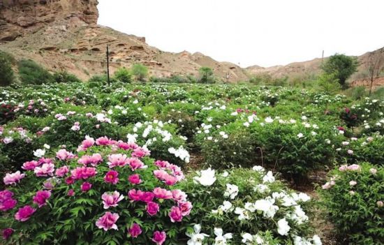 牡丹素有“花中之王”的美譽。5月下旬,位于白銀市白銀區武川鄉的黃崖溝里,300多畝牡丹花漸次盛開,白的、粉的、紫的、紅的,爭奇斗艷,花香四溢,逐漸成為城市游客周末前來游玩賞花、拍照打卡新的勝地。據了解,武川鄉黃崖溝長約7公里,共種植了300多畝牡丹,主要以紫斑牡丹和鳳丹牡丹為主。經過3年的生長,現畝產量能夠達到300斤左右,為當地村民增添了一條致富新路。