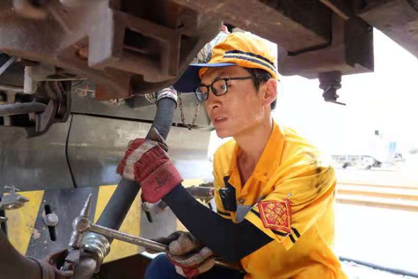 陳尚文說:“這種車型檢查重點主要在車體下部組件,需要仔細敲擊,聽音辨別是否存在問題,如遇問題要及時處理,并再次確認修復后的狀態良好。尤其是夏天,車體溫度較高,在車下作業要注意,一不小心就會被底架端部燙到!