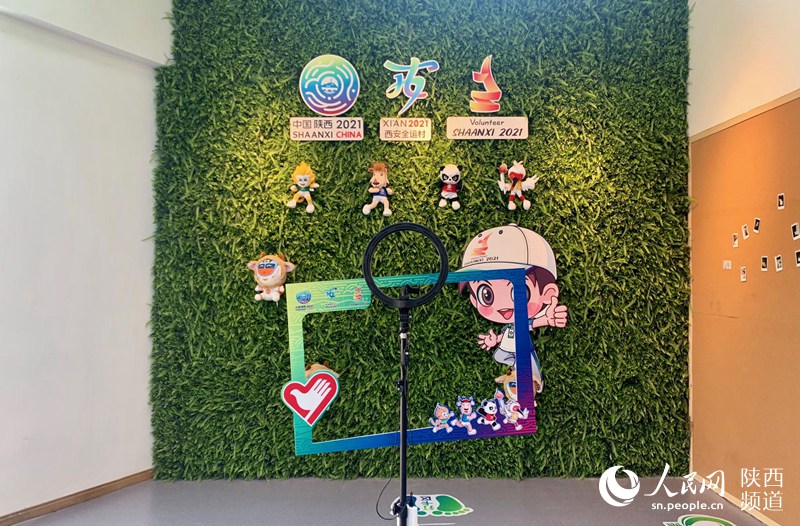 運動員村志愿者服務中心的網紅打卡區。人民網 鄒星攝