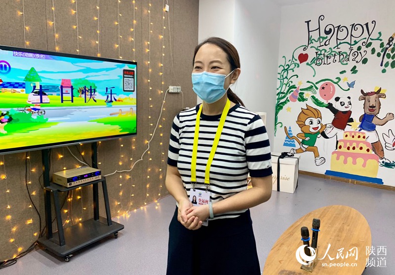程婉茹帶記者們參觀志愿者服務中心的生日屋。人民網 鄒星攝