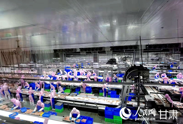 鎮原縣圣越農牧發展有限公司白羽肉雞加工車間。人民網 高翔攝