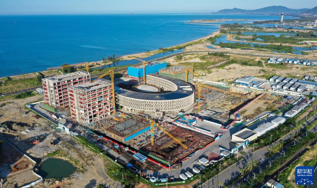 建設中的海南三亞崖州灣科技城的深?萍紕撔鹿财脚_項目(無人機照片,10月4日攝)。深?萍紕撔鹿财脚_項目未來將重點建設成為國家深?萍紕撔鹿财脚_和深?萍几邔哟稳瞬女a學研集聚地,滿足涉海高校開展深?萍佳邪l、科技成果轉化等公共需求。