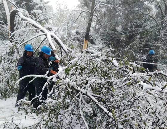 國網甘肅省電力公司黨委高度重視,要求各地市公司有序組織供電搶修,注意人身安全。供電搶修人員克服雨雪天氣和山區道路濕滑泥濘等不利因素造成的故障點查找困難、搶修受阻等影響,第一時間深入覆雪區域開展線路設備巡視及覆雪觀測工作,加緊組織開展電力線路巡視和應急搶修。