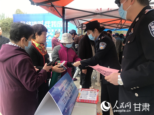 蘭州市公安局重點宣傳公安系統打擊網絡詐騙相關法律法規。人民網 周婉婷攝