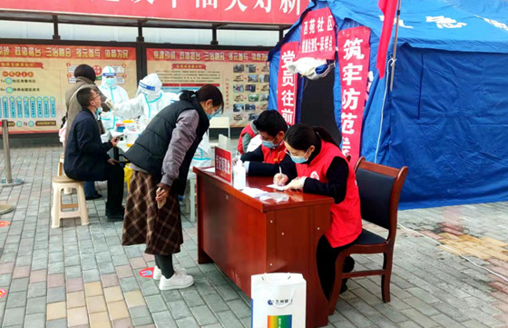 蘭州銀行各級黨組織充分發揮黨員先鋒模范作用,城關支行黨支部成立志愿者服務隊協助酒泉路街道暢家巷社區開展疫情防控工作,七里河管理行黨委統籌組織青年黨員志愿者在西街社區核酸檢測點開展疫情防控志愿者服務,紅古管理行黨委組織志愿者服務隊協助紅古區華龍街道開展志愿服務……