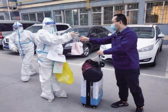 近日,紅二村社區疫情防控小組對解除集中隔離返家人員開展“三心”服務的關愛工作,用一份愛心、一份暖心、一份貼心歡迎他們回家,并為隔離人員送上了“愛心禮包”——“平安果”、祝?ㄆ、《大眾心理援助手冊》、消毒噴霧和醫用口罩。