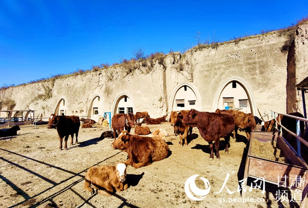 崇信縣錦屏鎮平頭溝村窯洞養牛示范基地。人民網 高翔攝