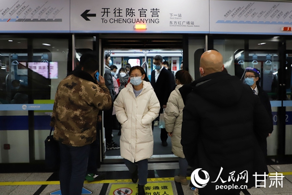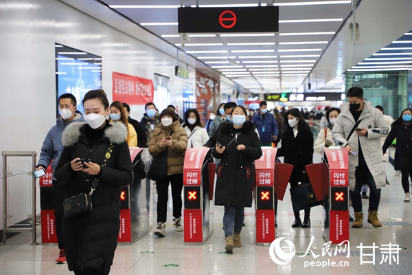 乘客在蘭州軌道交通1號線蘭州大學站上下地鐵。人民網 王文嘉攝