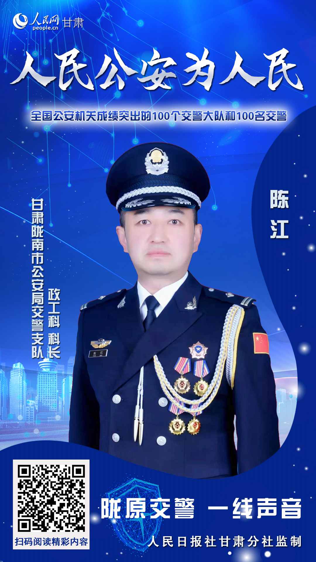 隴南市公安局交通警察支隊政工科科長陳江 甘肅省公安廳交警總隊法宣處供圖