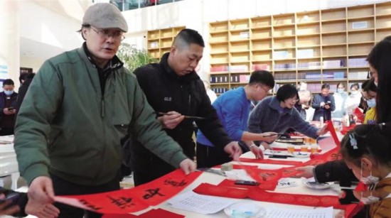 活動中,蘭州畫院和市文化館的10余位書畫家提筆蘸墨、盡情揮毫,為新區圖書館精心創作了美術作品,并為聞訊趕來的眾多新區居民現場書寫了寓意吉祥的春聯和“!弊纸400套(幅),在春節來臨之際為他們送上了美好的祝愿。