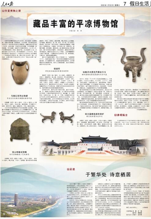 甘肅平涼博物館成立于1979年,現為國家一級博物館,是集文物收藏、教育服務、文化傳承、陳列展覽及科學研究為一體的綜合性現代化博物館。典藏各級各類文物1萬多件,品類豐富,文物歷史序列完整,以史前陶器、西周銅器、宋元瓷器、造像藝術等最具特色。2019年9月,平涼博物館新館(圖⑥)建成開館,總占地面積126畝,總建筑面積25689平方米,其中陳展面積1.1萬平方米,常設特色展覽有《隴寶涇華——平涼歷史文化陳列》《涇河激浪——平涼革命歷史陳列》等,展出文物1000多件(套),多角度、全景式展示平涼在歷史上作為“西出長安第一城”的重要地位。