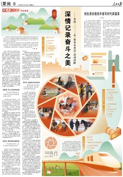 自今年1月17日,本報開設“新春走基層”專欄以來,百余名記者奔赴鄉村田野、城市街區、工廠車間、邊疆哨所、春運現場、防疫一線,傾情用力報道各地經濟社會發展成就,展現人民安居樂業的美好景象,推出了一大批“沾泥土”“帶露珠”“冒熱氣”的新聞報道。在行走基層的過程中,他們收獲著成長……