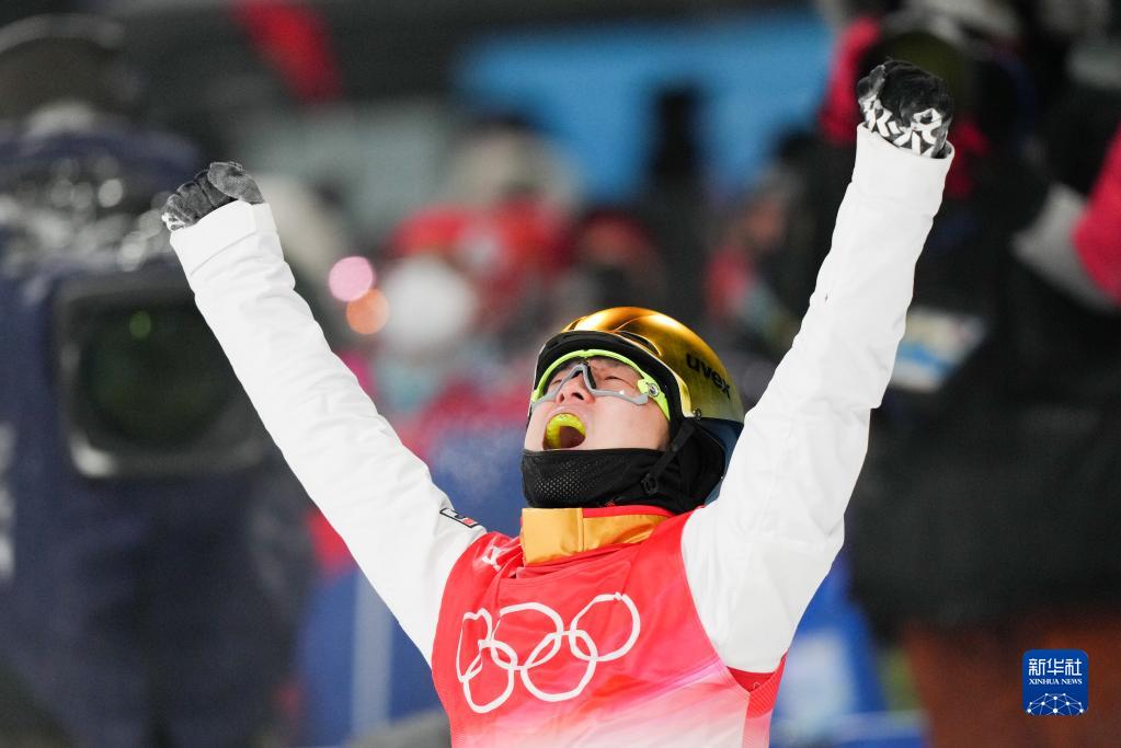 當日,北京2022年冬奧會自由式滑雪男子空中技巧決賽在張家口賽區舉行。中國選手齊廣璞奪得冠軍。