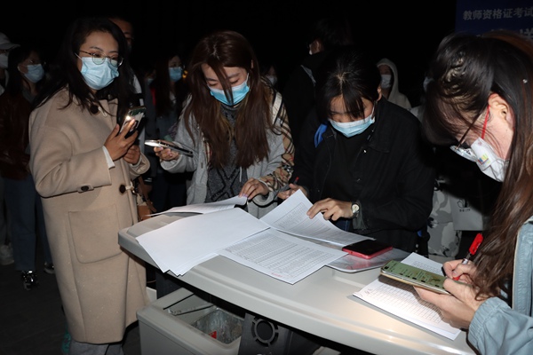老師們正在核對參加考試的學生名單。西北師范大學供圖