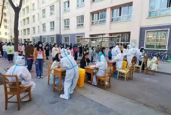 疫情防控專班工作組組織學生有序做核酸。西北師范大學供圖