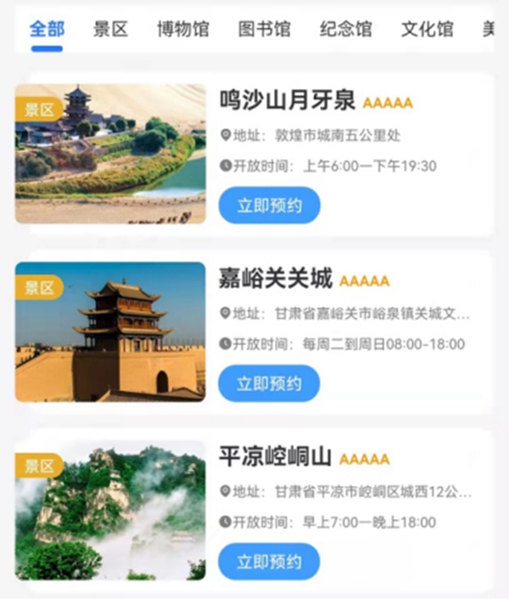 分時預約景區(場館)列表。甘肅省文旅廳供圖