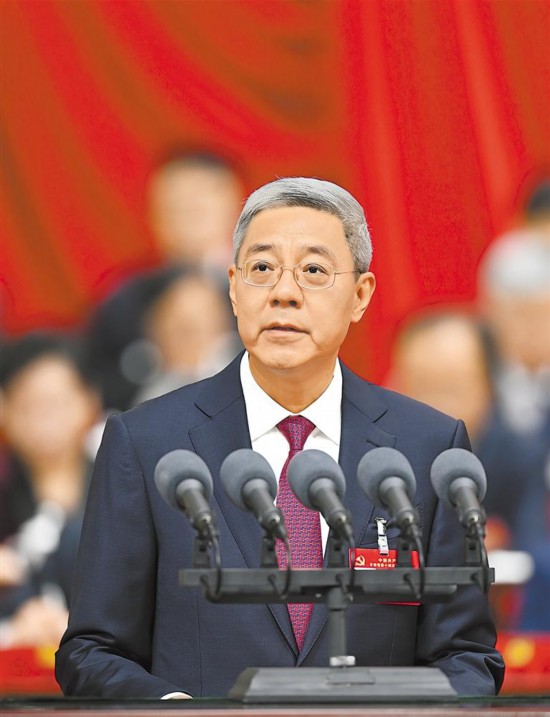 尹弘代表中國共產黨甘肅省第十三屆委員會向大會作報告 任振鶴主持
