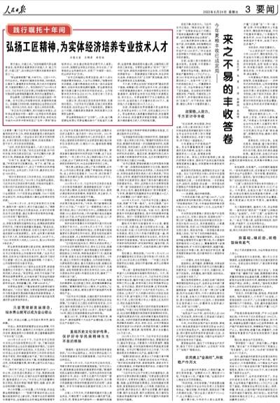 弘揚工匠精神,為實體經濟培養專業技術人才(踐行囑托十年間)