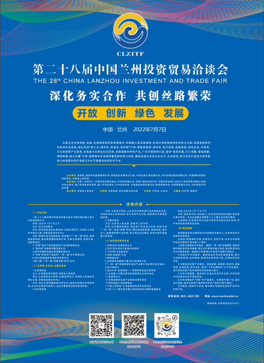 本屆蘭洽會將完整、準確、全面貫徹落實新發展理念,積極融入新發展格局,堅持以供給側結構性改革為主線,統籌疫情防控和經濟社會發展,結合實施“強工業、強科技、強省會、強縣域”行動,聚焦新能源、新材料、電子信息、裝備制造、綠色生態、中醫藥、文化旅游等產業發展,全面展示甘肅省區位優勢、資源稟賦和特色產業,廣泛開展招商引資,做好“盤活存量、引入增量、提高質量、增強能量、做大總量”文章,集聚推動全省高質量發展的強大動能,確保本屆蘭洽會辦出水平、辦出成效,將蘭洽會打造成為具有影響力的我國向西開放窗口和永不落幕的經貿合作平臺。