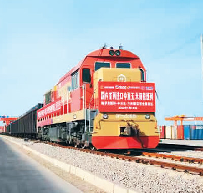 國內首列進口中亞玉米回程班列到港蘭州新區中川北站物流園。