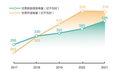 2016年,甘肅外送電總量為156.02億千瓦時,其中新能源66.23億千瓦時;2021年,全省外送電總量為517.55億千瓦時,其中新能源174.53億千瓦時。5年來,通過祁韶特高壓線路,甘肅累計外送電量883.96億千瓦時,其中新能源達291.38億千瓦時。目前,除了祁韶特高壓線路,甘肅省還在積極推動建設“隴電入魯”“隴電入浙”等工程,進一步提升跨區跨省輸電能力。