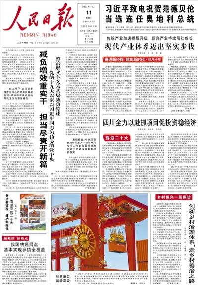 《 人民日報 》( 2022年10月11日 ? 第?01 版)